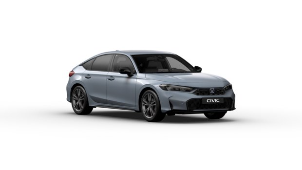 Modèle présenté : Civic e:HEV Advance en coloris Gris Sonic – Consommation et émissions en cycle mixte WLTP selon la version : 4,7 à 5 l/100 km et 108 à 114 g de CO2/km. Chiffres issus de tests réalisés par un laboratoire agréé par l’UE ; ils sont fournis à titre de comparaison et peuvent ne pas refléter l’expérience de conduite en conditions réelles.