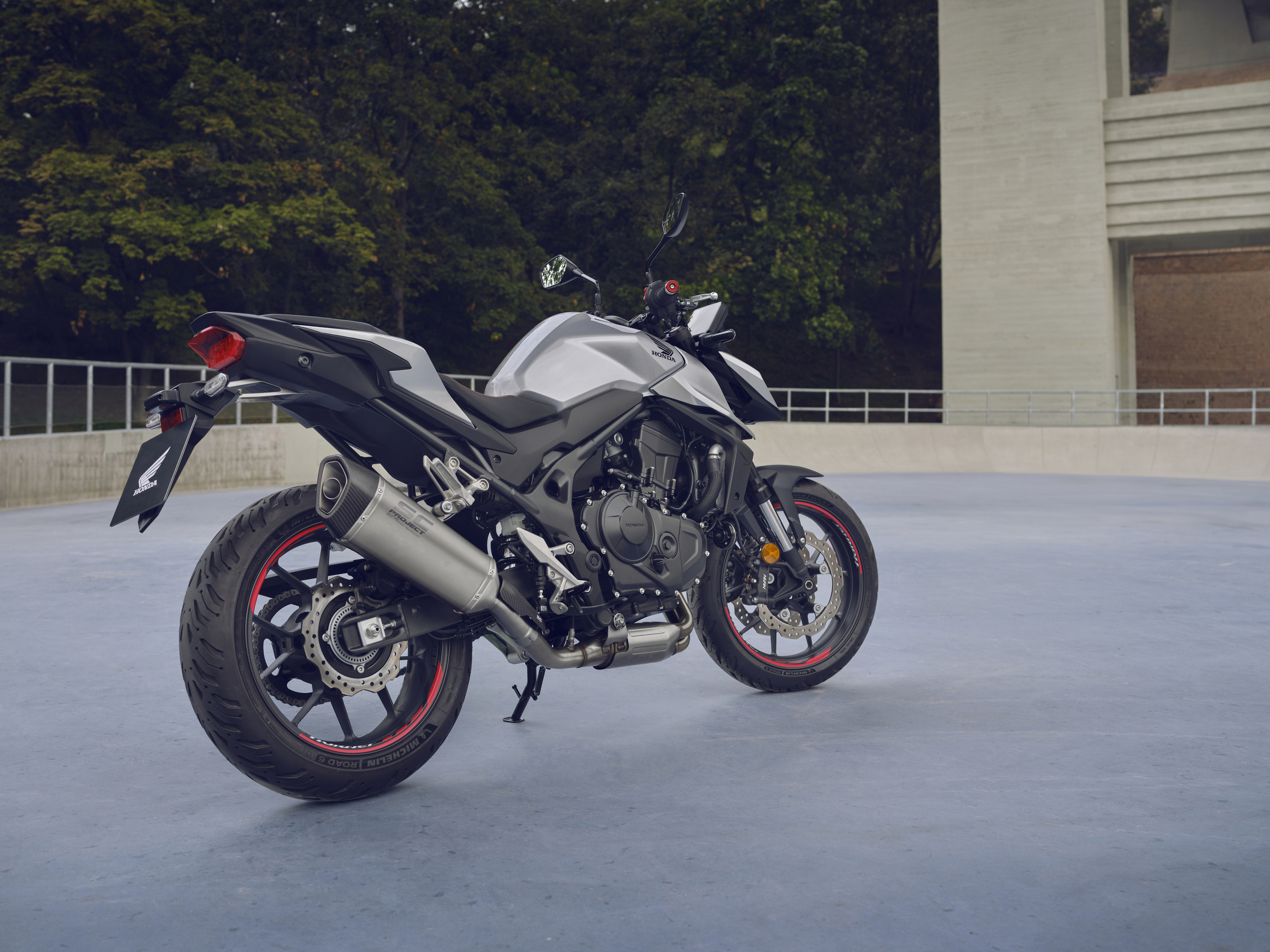Conçu exclusivement pour Honda par la société slovène, le nouveau silencieux Akrapovič a été homologué CE/ECE par un laboratoire européen agréé pour une utilisation sur route et est entièrement conforme aux normes EURO 5+. L'amélioration des performances est perceptible avec un gain de poids de 1 kg par rapport au silencieux d'origine, une augmentation de la puissance de 0,65 ch à 3 400 tr/min et une augmentation du couple de 1 Nm à 3 300 tr/min.