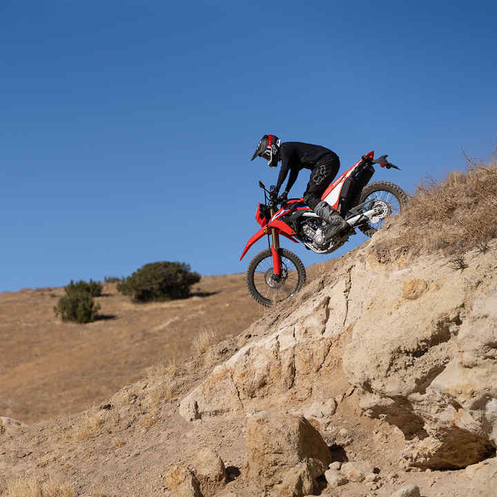 Le CRF300L est le trail polyvalent et léger par excellence. Les mêmes qualités qui en font une machine parfaite dans les chemins, un gabarit contenu, un moteur vif, une direction agile et des suspensions souples, la rendent également très efficace en ville. Redonnez vie à vos trajets quotidiens grâce à une maniabilité hors-normes et une polyvalence remarquable. La CRF300 Rally est conçue pour les pilotes les plus aventureux, ajoutant de l'autonomie et du confort à des qualités tout-terrain indiscutables.