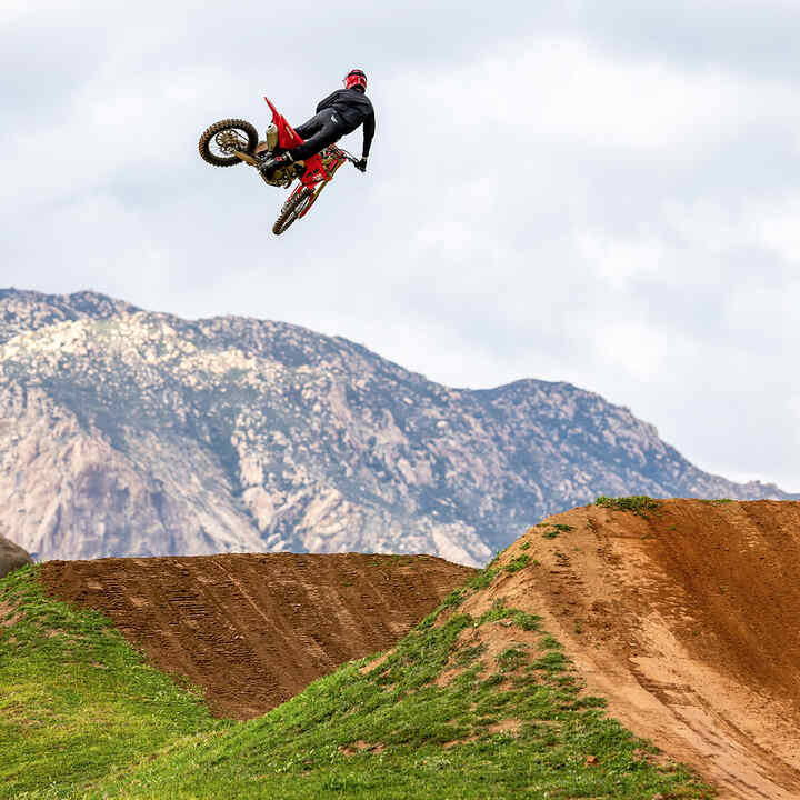 La catégorie MX2 est très disputée. Et vous trouverez la nouvelle CRF250R au centre de ce combat. Pour 2025, elle est dotée des mêmes évolutions de partie-cycle - et du même pedigree de championne MXGP - que la CRF450R, avec davantage de stabilité et de contrôle dans les virages abordés à grande vitesse. Le moteur offre encore plus de puissance à mi-régime et bénéficie désormais du contrôle de couple paramétrable Honda (HSTC) pour une traction maximale de la roue arrière. Les nouveaux habillages renforcent le caractère gagnant de la machine. Si vous êtes prêt à passer au niveau supérieur, la CRF250R est la machine qu’il vous faut pour commencer à gagner.