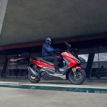Du point de vue du style, le Forza 350 place la barre haut ; c'est un mélange d'efficacité aérodynamique et de présentation sportive. Le carénage avant, les phares et le feu arrière à LED ont été redessinés et s'inspirent de l'excellent Forza 750. Ils se combinent parfaitement pour gérer le flux d'air et réduire la pression sur le conducteur afin d'améliorer le confort de conduite. Grâce au réglage électrique de la bulle, choisissez entre filet d'air rafraîchissant ou protection optimale en appuyant simplement sur un bouton…